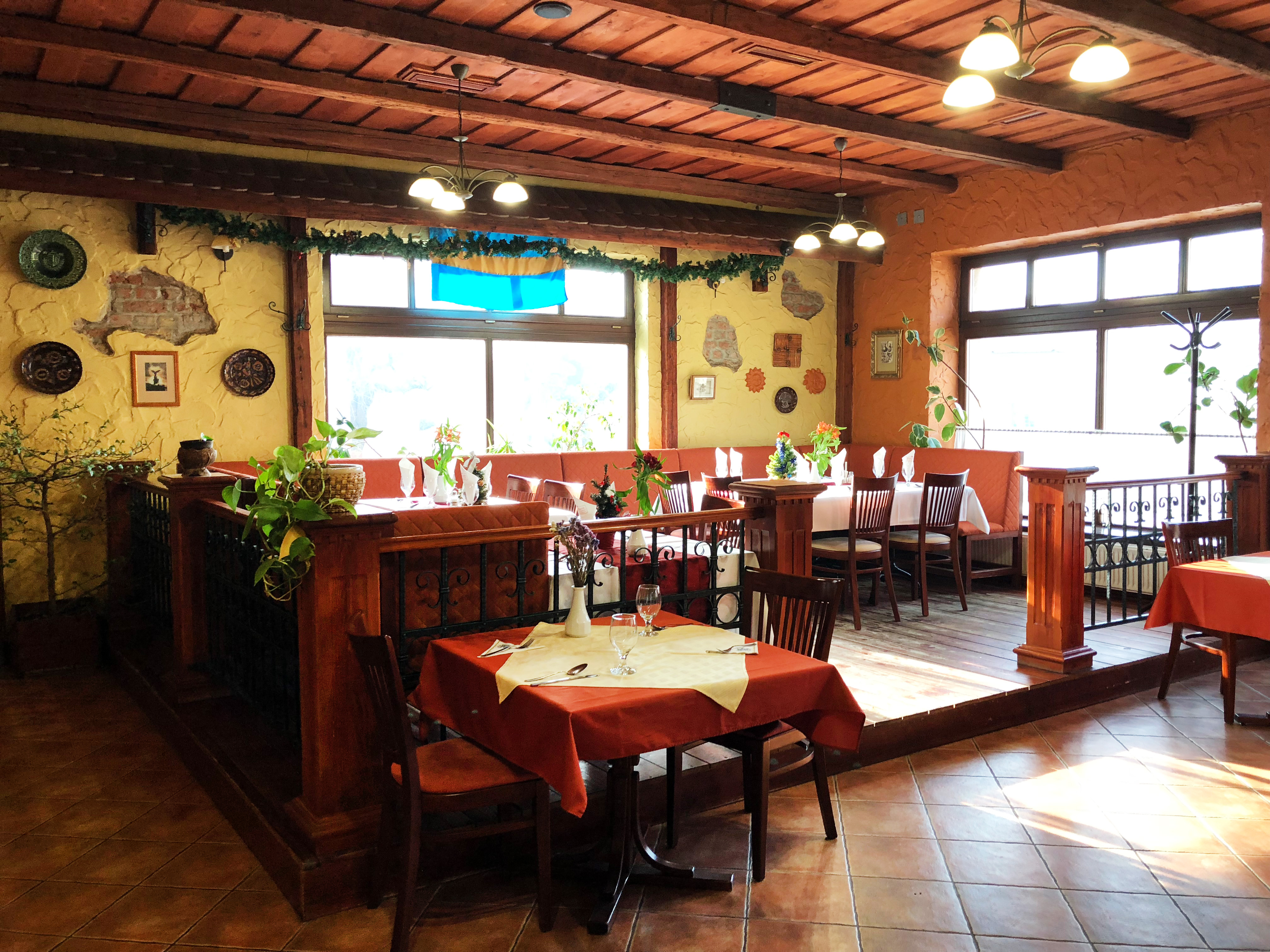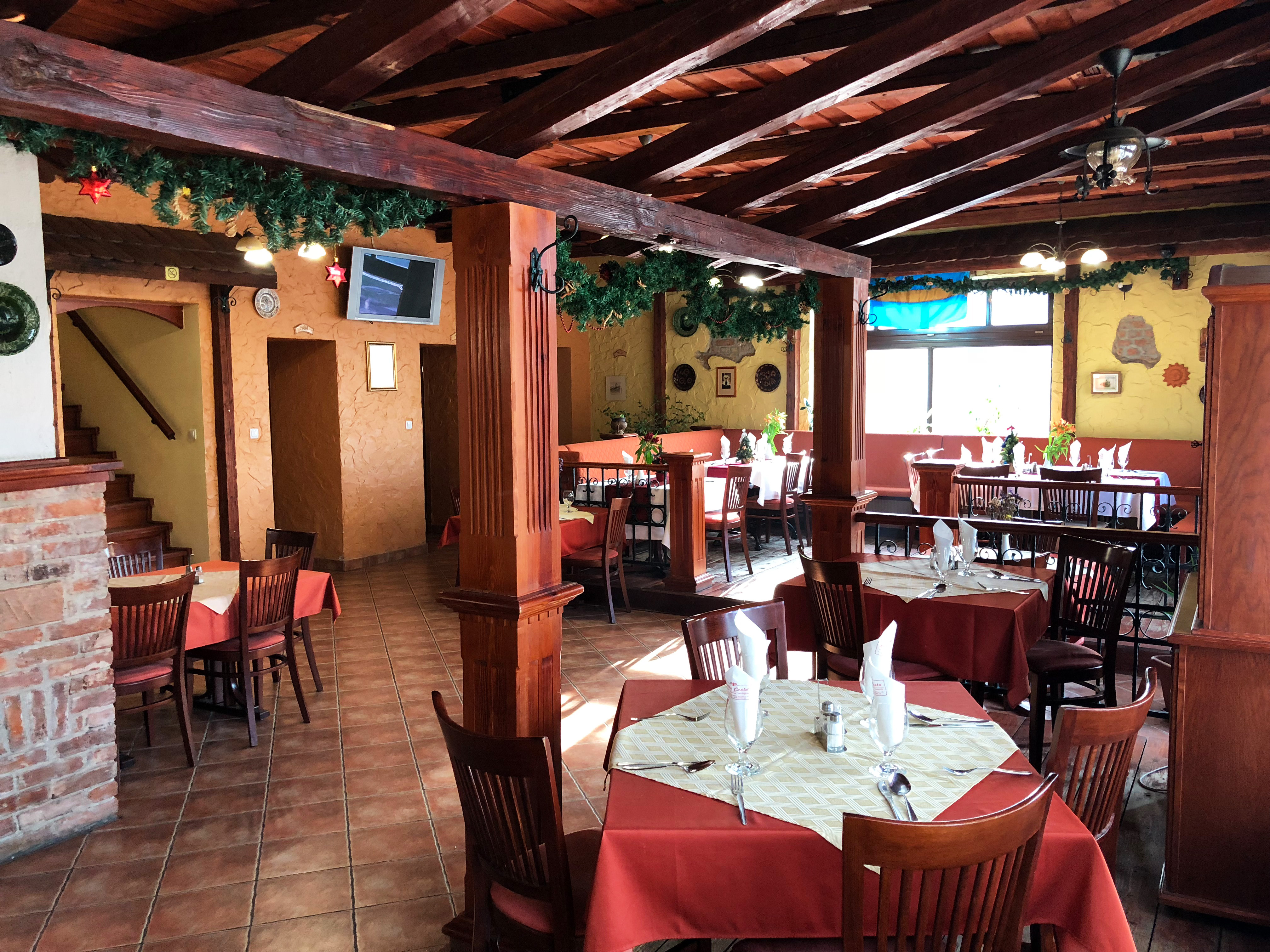 Légkondicionált éttermünk 150 fő részére étkezést biztosít, 40 fős konferencia terem, valamint mediterrán nyári sörkert várja a betérőket. Finom magyaros és mediterrán ételspecialitásokat több nyelvű étlapból választhatnak vendégeink.